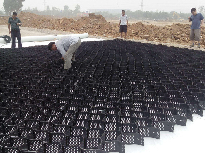 4、在遇到软地基时,采用土工格室可大大减轻施工劳动强度,减少路基厚度施工速度快、性能好,大大的降低工程造价。